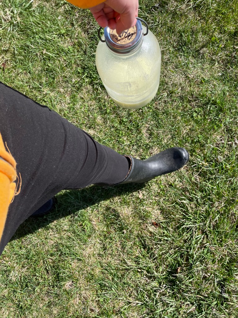Our morning included laundry on the line (so windy, it came off later!), giving our blueberry bushes some whey (I’ve read it can help with the acidity of the soil), sweeping up the farm office (my six year old was in charge of that job! Mama just helped finish up.), some less exciting inside chores for the kiddos, and putting a delicious hyacinth into a vase in the kitchen. The kids decided to play ‘train’ and so the reality of a messy house was also realized- ha! (note my Sweet Husband’s IKEA lamp, ha)