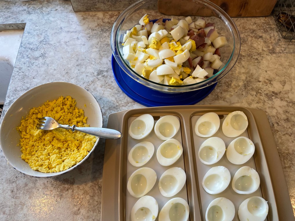 • deviled (or dressed depending on where you’re from), adding mayo/Miracle Whip, S and P, pickle juice, mustard etc.
