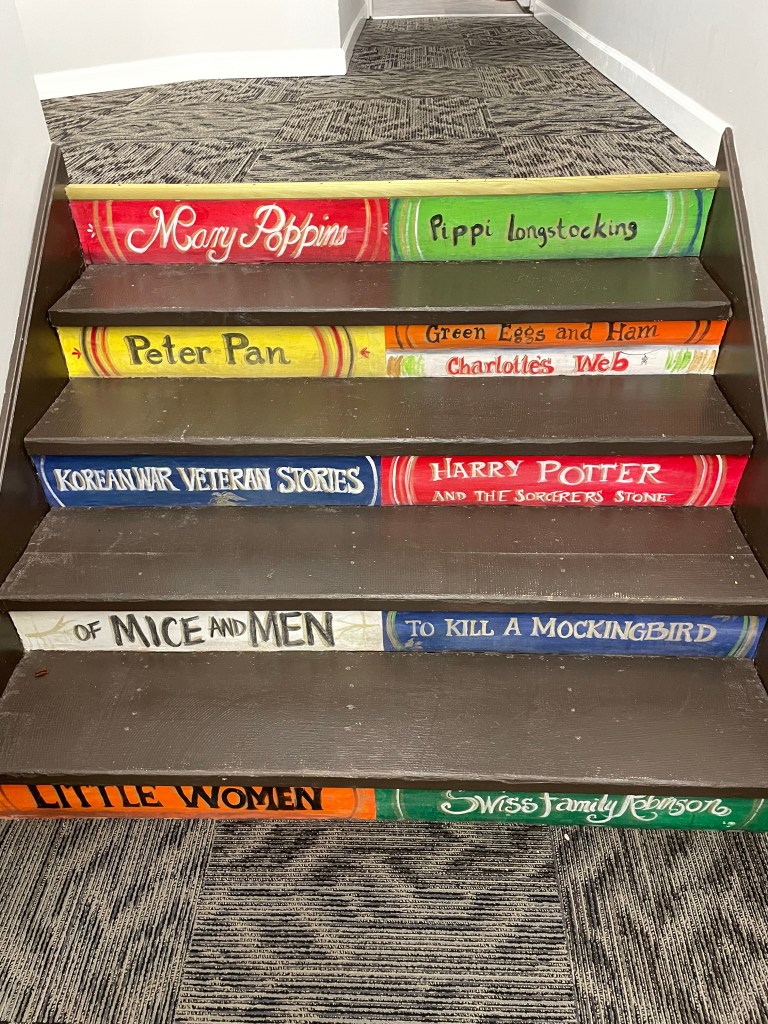 When we got home, I had a quick phone meeting for our local homeschooling group. Then, the kids and I jumped back into the van and headed to the library. My oldest son takes piano lessons in town as well, once weekly during the school year.