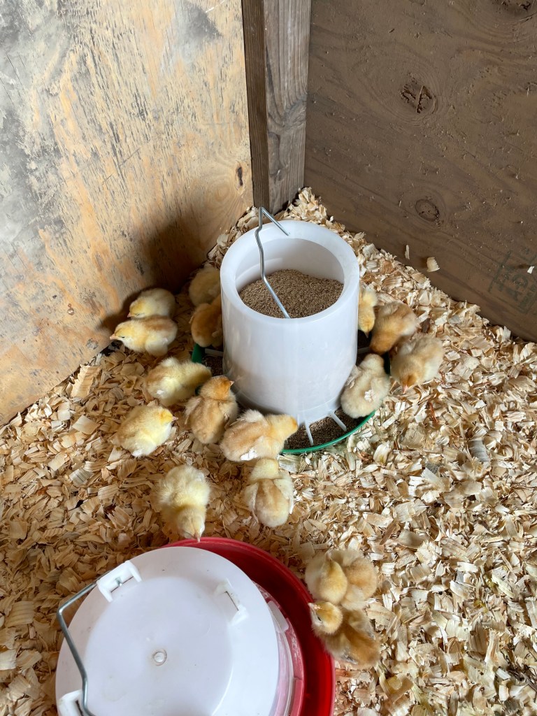 So! Here we are in year 3, raising Cornish Cross again. We ordered 50 birds this go round. The hatchery sent 51, I’m sure a normal percent increase due to mortality in transit. However, we did not lose any during the shipping process. These birds seem very healthy and growing happily. We have lost two birds so far, which is not abnormal. Our birds have plenty of room to roam and so those two deaths were not caused by pecking order etc. Most likely weak early on.