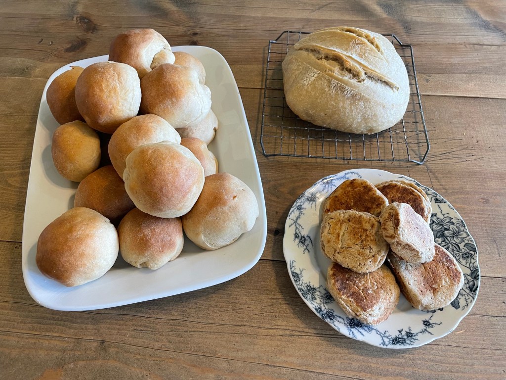 10:02 am Am I baking too much this morning? Ha! I generally batch bake in bulk so that we have plenty of breads in the freezer. Here, it was time to get my sourdough rolls, another Farmhouse on Boone recipe, though tweaked a tad, out of the oven. Wow! What a beautiful morning for sourdough! My starter has been perfect lately!