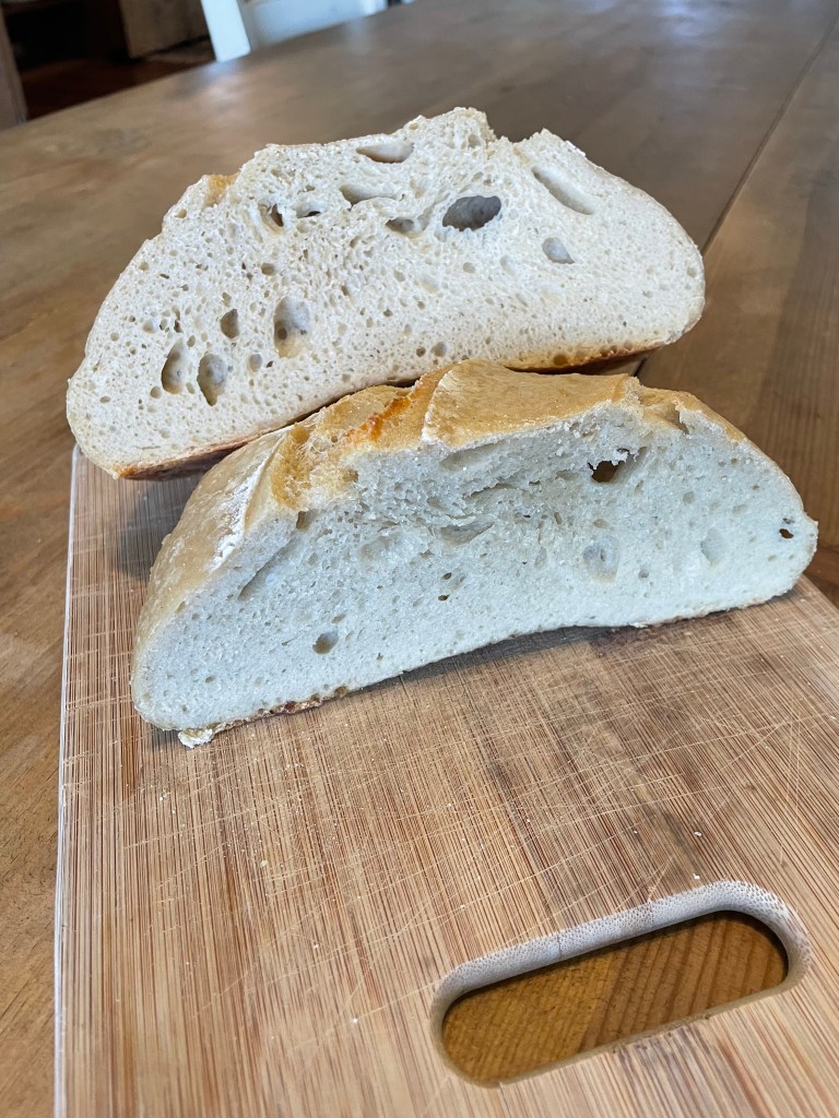 9:16 am Yes…. just two minutes later, my sourdough artisan loaf was finished baking and needed to cool on the counter. This style loaf has me and a friend working on ‘the perfect loaf’ currently. And, I must say, Ballerina Farm’s recipe has been the best I have ever tried so far! Not only beautiful, but crisp and also soft inside. We love this kind of bread as toast.