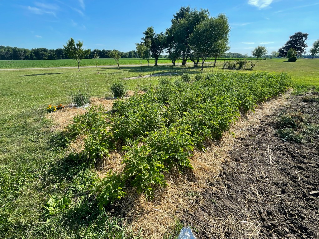 Our potatoes seem to be very healthy and have been hilled and mulched with straw. We have 3 rows of those and I am encouraged by how well they seem to be doing.