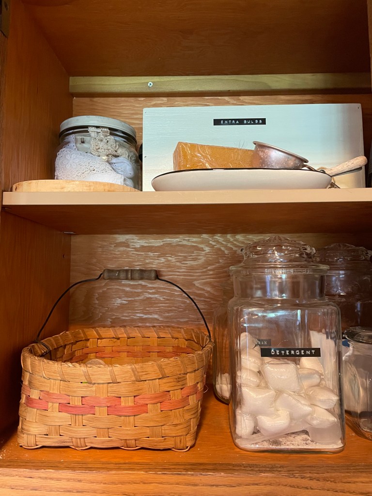 I like pretty things. When I do my chores, I want to see a glass jar with detergent versus a crinkly bag of pods. An old fashioned style label maker makes things organized as well as adorable. For a long time I made all of our detergent. However, for a few reasons, I have stopped doing this. One: the ground soap powder began making white spots on some of our clothing. Two: I can’t do it all, as much as I’d like to! And so, this became an area where I purchase a natural laundry pod. Pods are easy for kids to use and the possibility of waste is much less. More on this topic later!
