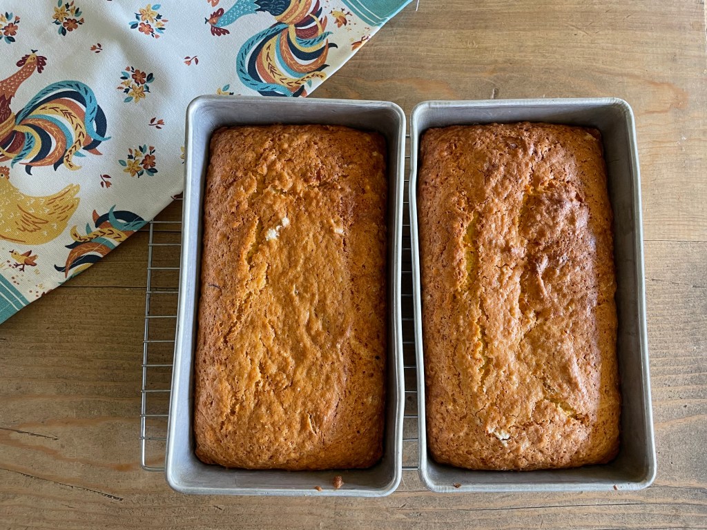 Even with the hot temps outside, as a homemaker some baking is required. It’s often bread of some kind. But it can also be a dessert here and there. Roasted veggies are also a fave. (above: orange quick bread)