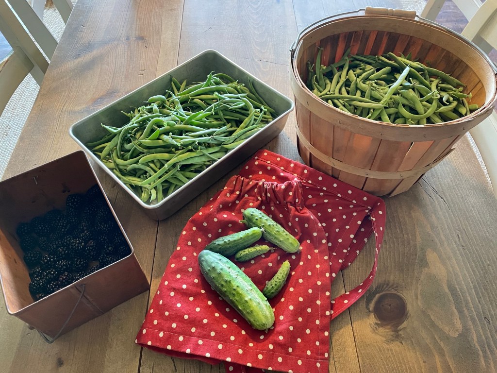 Depending on the day as well as the weather, we are in the garden many days per week. Recently with the rain, we haven’t been able to hoe or harvest root crops. But, we are bringing in other lovely foods to eat fresh and preserve. This week’s newbie: sweet corn!