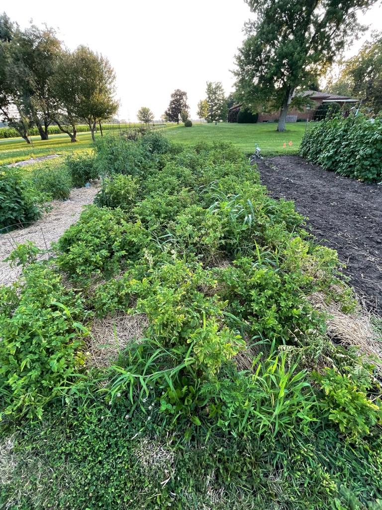 The potatoes are really dying off now and we should be able to harvest them in the next little bit. This year was three rows (30 ft each) of German Butterball.