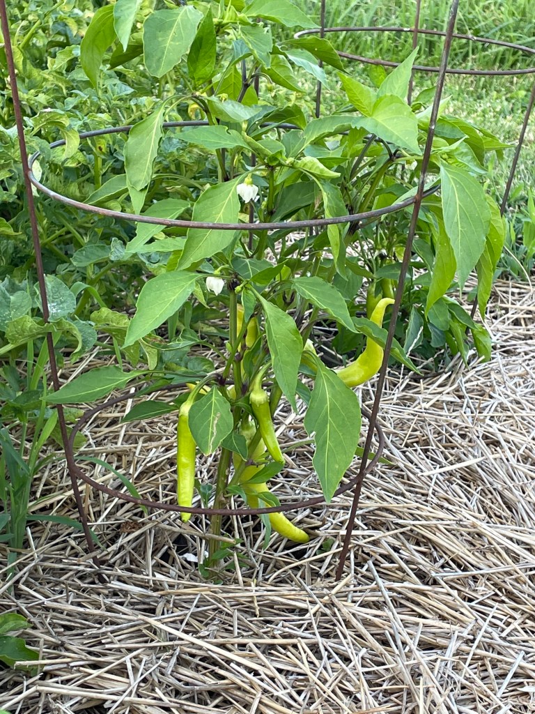 The tomatoes and peppers are growing fine. No red tomatoes yet, but the green ones are coming on strong. I picked 3 banana peppers and took them down to my sisters’ in St. Louis this past weekend. I don’t particularly care for them unless they are pickled, but I love them that way!