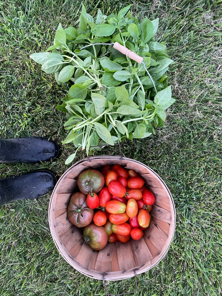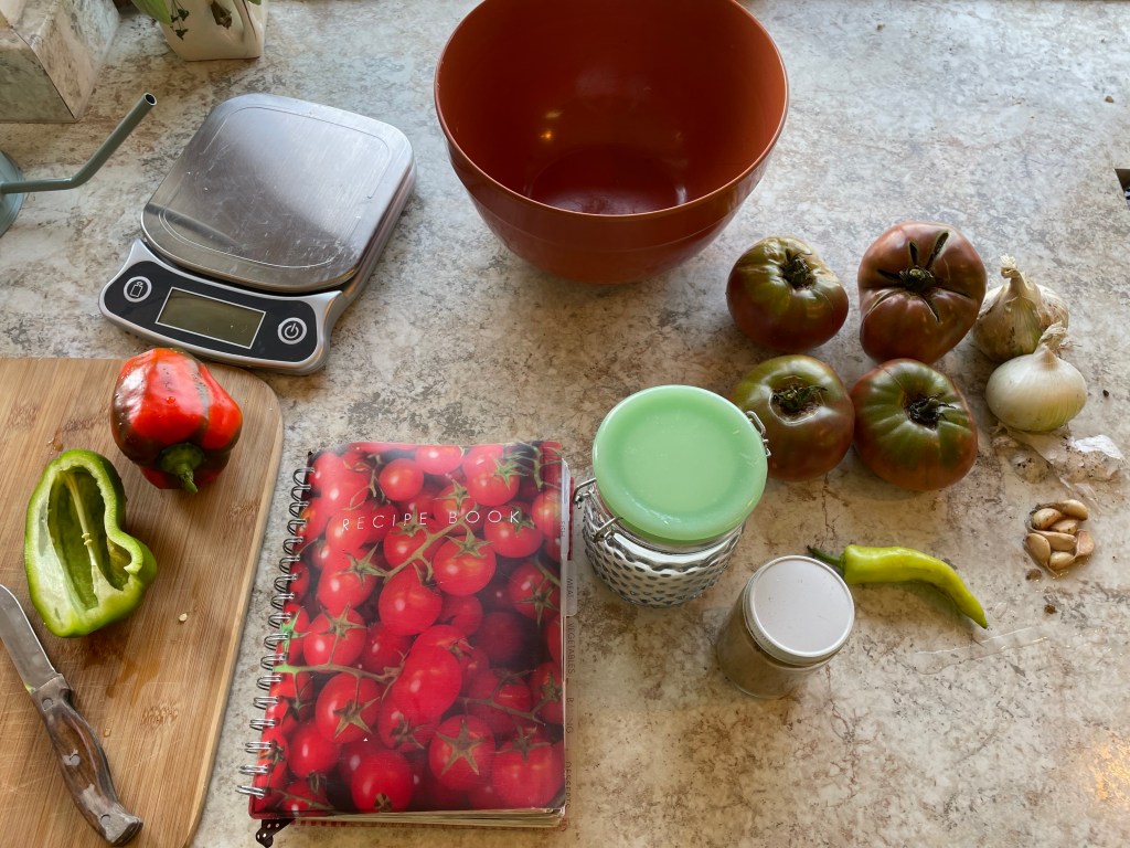 For the salsa, I am able to use homegrown onions, peppers, and garlic! I will post a recipe for this soon. NOTE: the above tomatoes are Cherokee Purple, hence their color not being bright red.