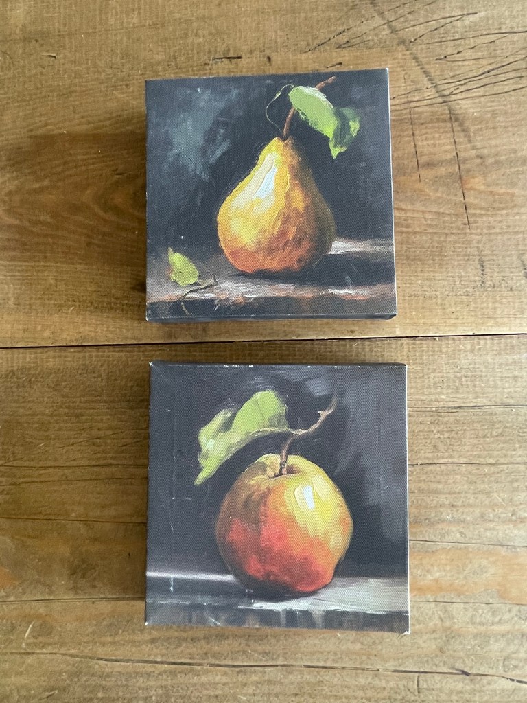 I loved these mini canvas art frames. I chose the apple for my kitchen and the pear as a gift. Very rich colors.
