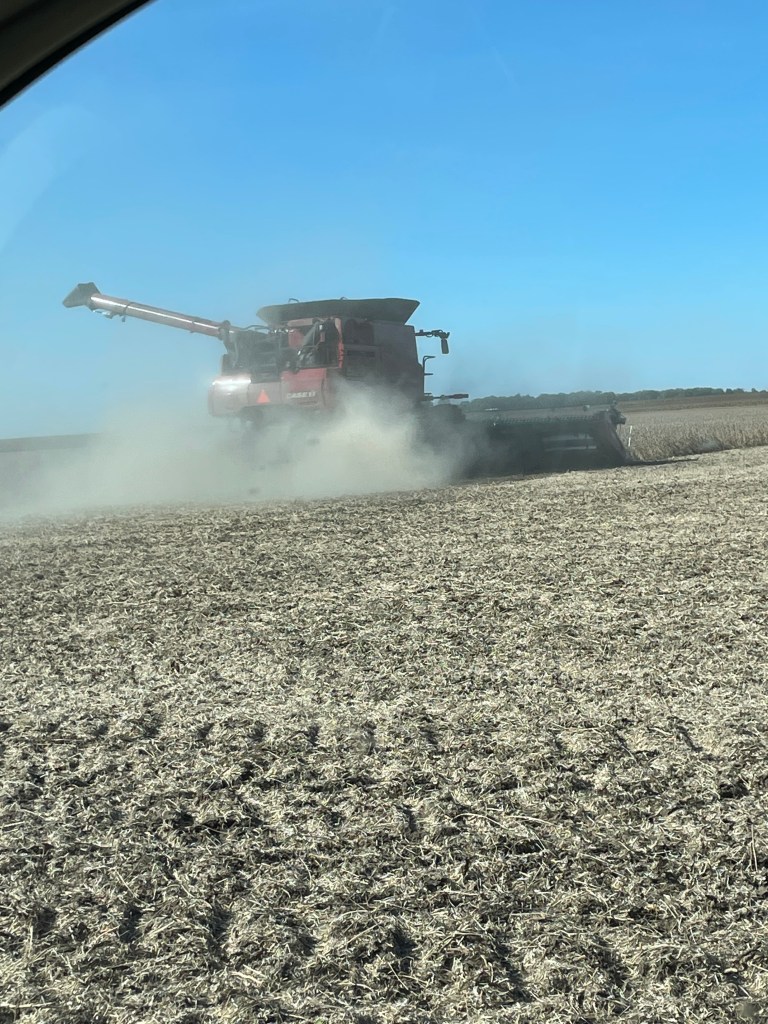 3:32 pm We took snacks to the field today. BBQ chicken rolls with homemade cookies (my second son makes them) and juice. The kids got to ride in the tractor/grain cart and combine.