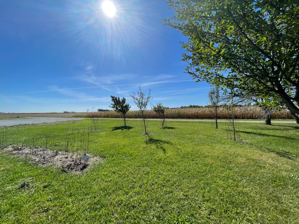 10:15 am The kids and I took the tomato cages we’d taken off the tomatoes last week and put them around our baby trees- 8 of them. This keeps the deer from demolishing them over the winter. We use zip ties and some iron rods to help hold them in the ground. We also covered the blueberry bushes to hopefully keep them safe as well.