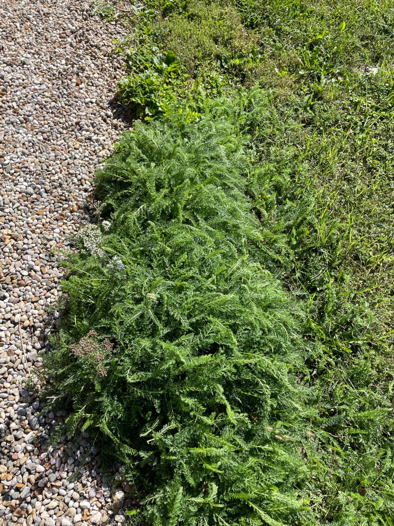 10:53 am I cut some yarrow leaves that are still growing strong near the side door and hung it (laid some out) to dry. I am using this post to make some yarrow powder to add to our ‘medicine cabinet’.