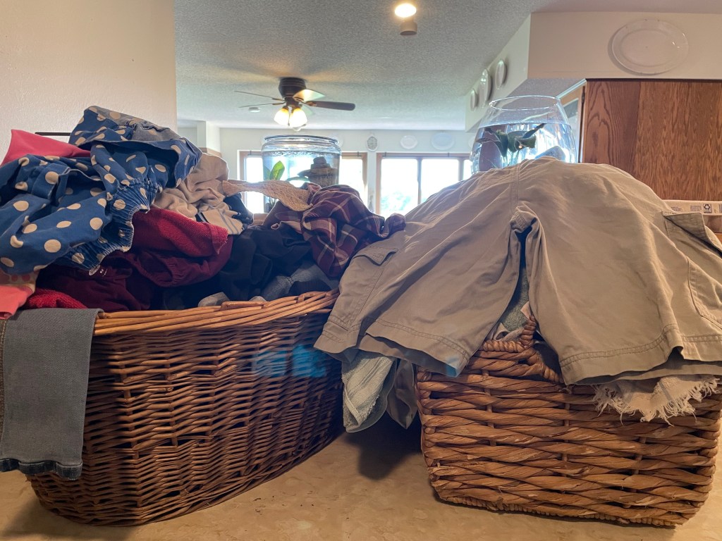 8:28 am I made sure all of the laundry was out of the dryer from yesterday before we began school (half an hour later than usual). I knew I needed to fold the 3 loads I had washed yesterday.