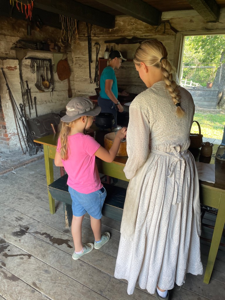 The visitor’s center offers a small but well presented museum. There are interactive audio speakers to listen to as you view the artifacts. Many black and white photos show the historic preservation of the farm site. And the children can even play with hands on toys and dress up!