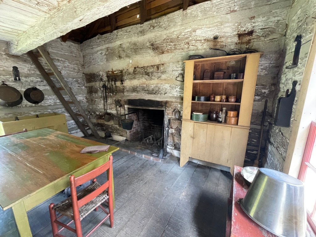 Outside, you can take trails that lead to the old homestead cabins and house. There are two farms that have been brought together to show life from two different perspectives. One farm was once about ten miles west. The homes were moved in and restored. Thomas Lincoln’s cabin, though a reproduction due to the original being lost, is on its actual spot! The website offers information on re-enactors and the times they are on site. My kids love helping them as they prepare the noon day meal.
