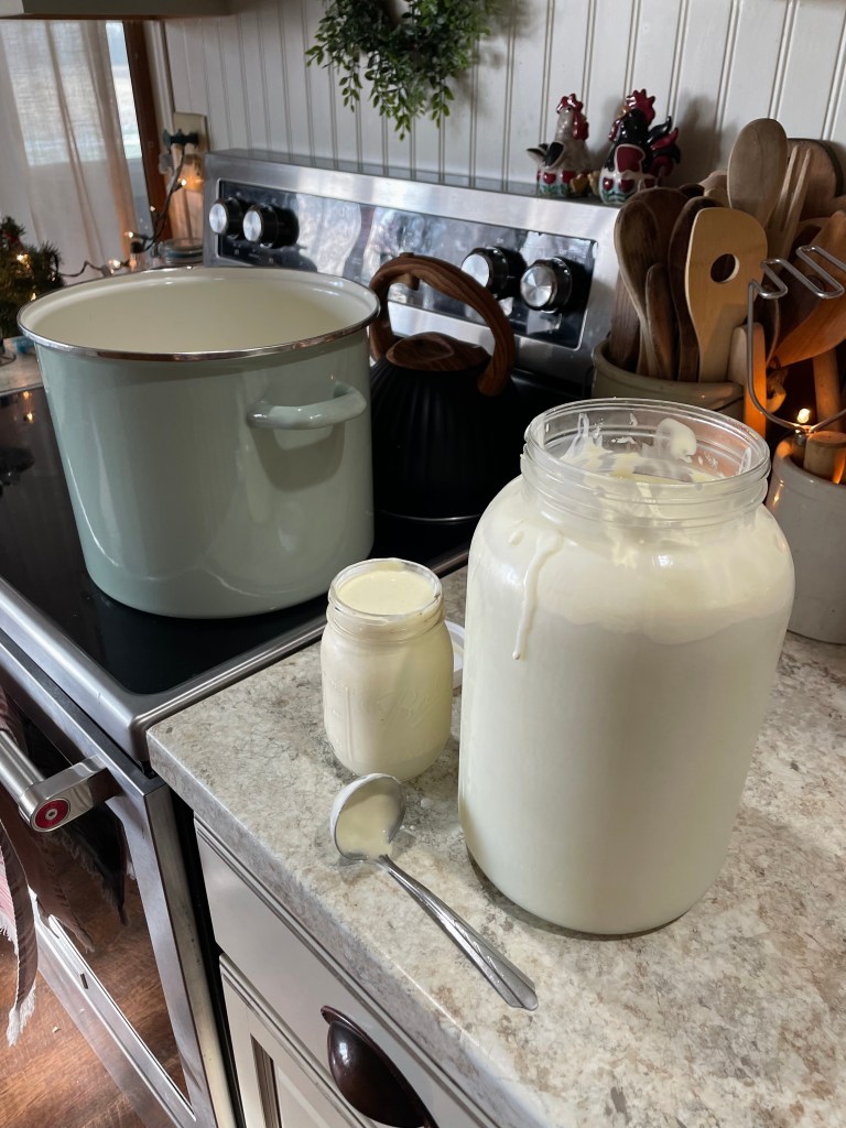 Trying a new cheese: quark! We used it on salad, stirred into macaroni or rice, and spread on crackers. I also reserve the cream from the raw milk when cheesemaking and use it elsewhere.