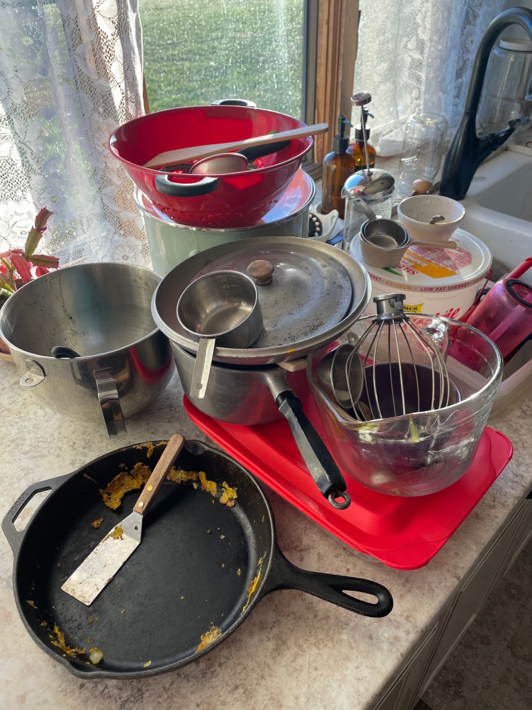 Real life. Dishes stacked and ready to wash after some cooking and baking.