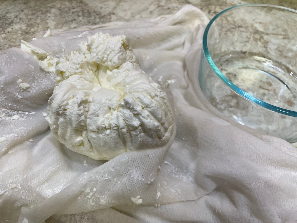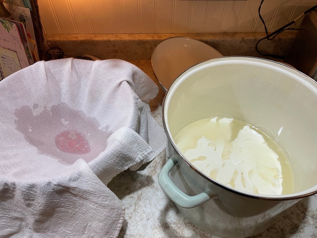 Simple, right? Most of the time is ‘hands off’ time. This cheese is very versatile. We like it mixed into various dishes, spread onto crackers, or even by itself! And, I made a German Cheesecake with it for Christmas that was yummy!