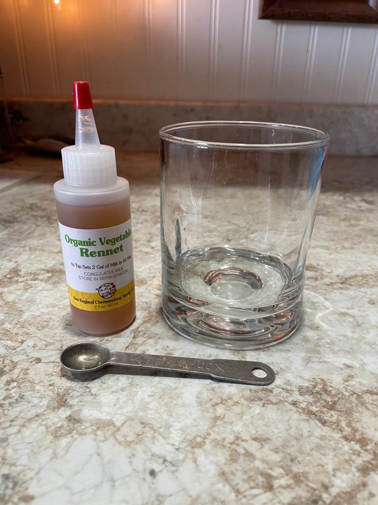 • rennet (each container has it’s own instructions for how much to use per gallon of milk)