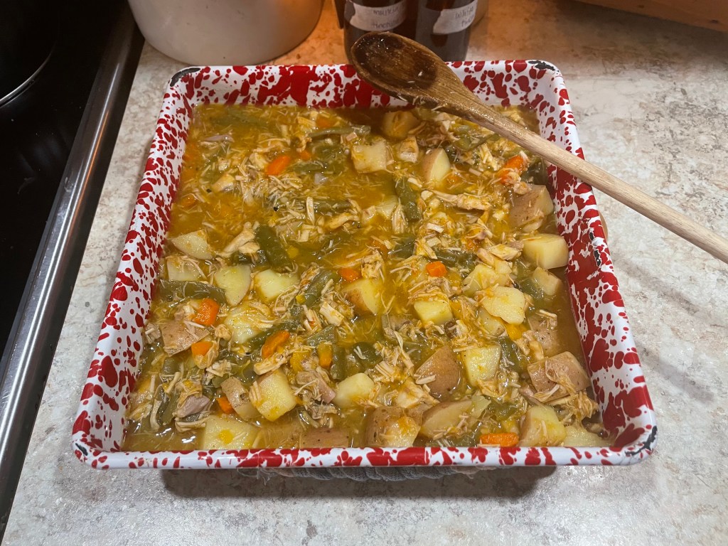 This isn’t a soup, but I did use leftover chicken veggie soup to make it! This photo doesn’t show the freshly milled pie crust… but it was a yummy supper that night! This is one of my all time favorite meals. I love a pinch of dried thyme in my pot pies!