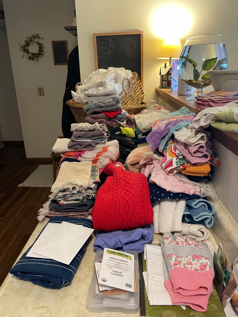 What’s a ‘home day’ without laundry… and garden gloves… and mail? Martin the Beta fish likes to visit while I fold clothes.