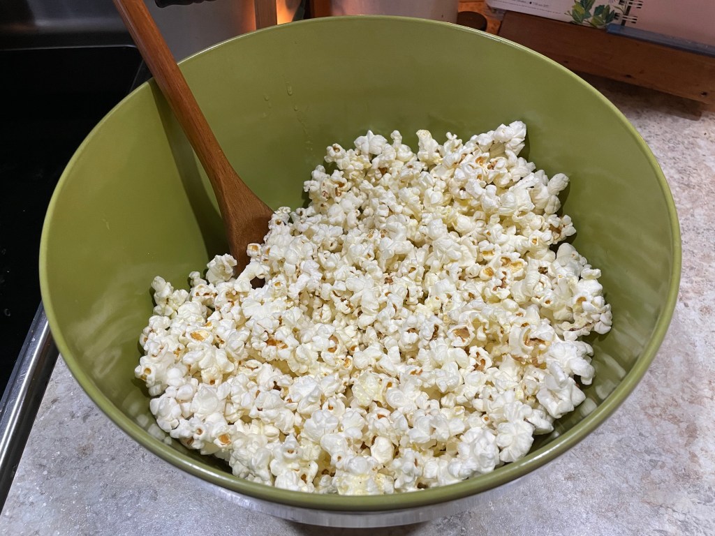 5:30- most Sundays I don’t make a big supper. Sweet Husband is the best popcorn popper (we use a Whirlie Pop!) and often makes popcorn as a snack or part of supper. This day we had some snacky things (cheese and crackers, fruit, etc) and leftovers.