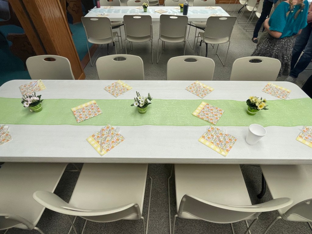 I help with fellowship snacks and so I start the coffee and hot water for tea, lay out snacks, and have things prepared for whomever will serve that particular Sunday. So, between worship service and Sunday School (SS) we generally have some sort of muffin and a salty treat as well.