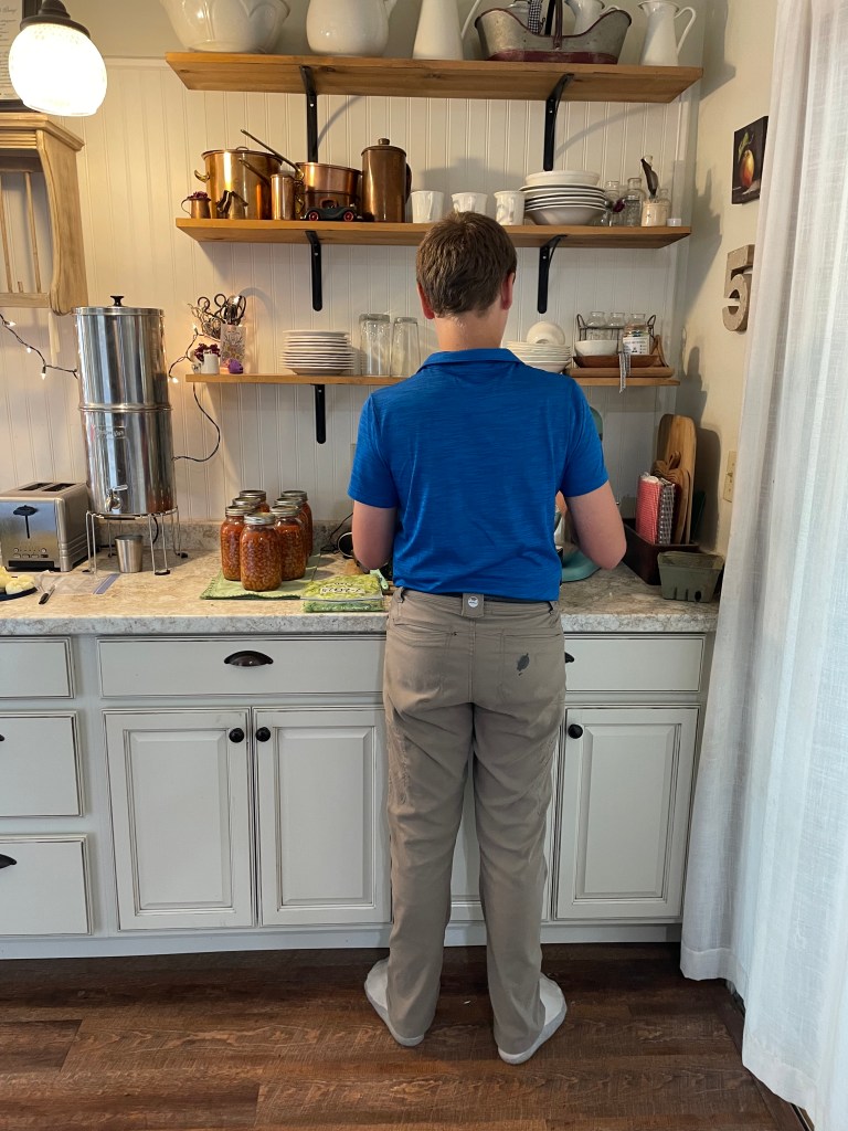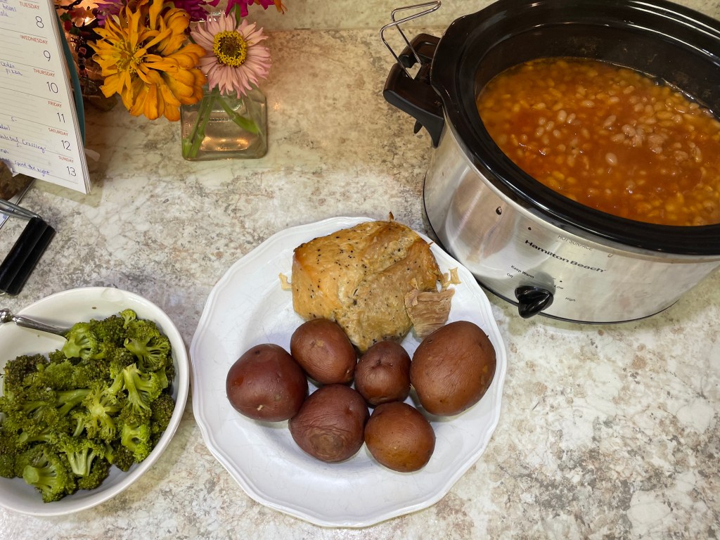 Because the bean canning had leftover beans that wouldn’t fit into the jars, we enjoyed baked beans for supper alongside a pork roast, potatoes, and fresh roasted broccoli.