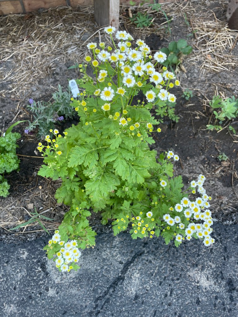 What a day! Lovely and full. I actually enjoy putting more into my day than I can get done. A sort of challenge for myself. (above: my feverfew plant showing her sweet blooms)