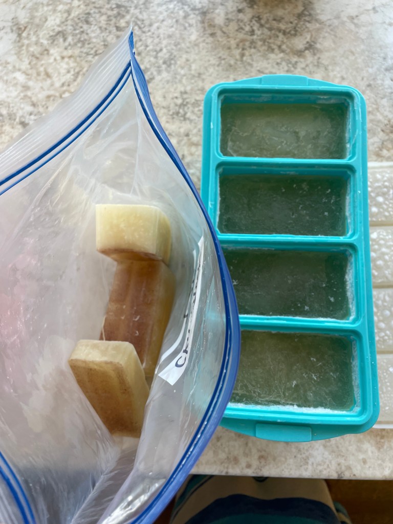 Since we cook about one chicken per week, we usually have a lot of bone broth/meat stock. When I cook other types of broth, I often need to freeze some. These ‘souper cubes‘ are perfect and I can take a one-cup cube out when needed. Keep eating/drinking your bone broth!!