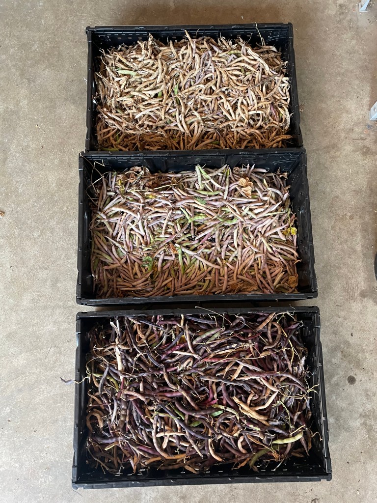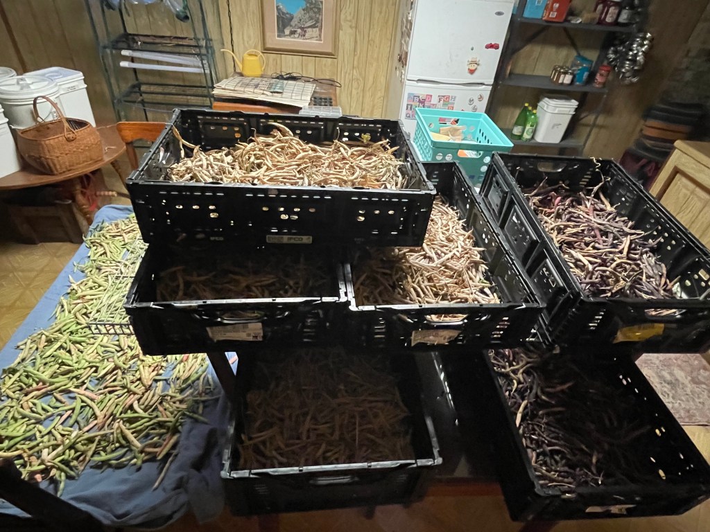 Here are all of our dried beans, finishing drying before we shell them. We use the pillowcase method of shelling (more on that in the future). Aren’t we blessed??