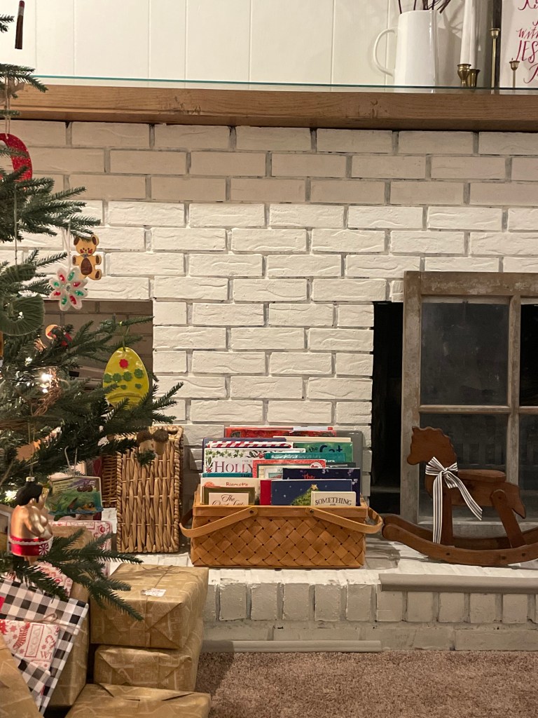 But soon our shelves overflow. So, in our house, we implemented holiday book baskets. In a metal cabinet in our basement sit the holiday books for the year. Each holiday has its’ own stack. When one holiday or season passes, those books head downstairs and the next set comes up. This keeps things fresh and our shelves are happier.