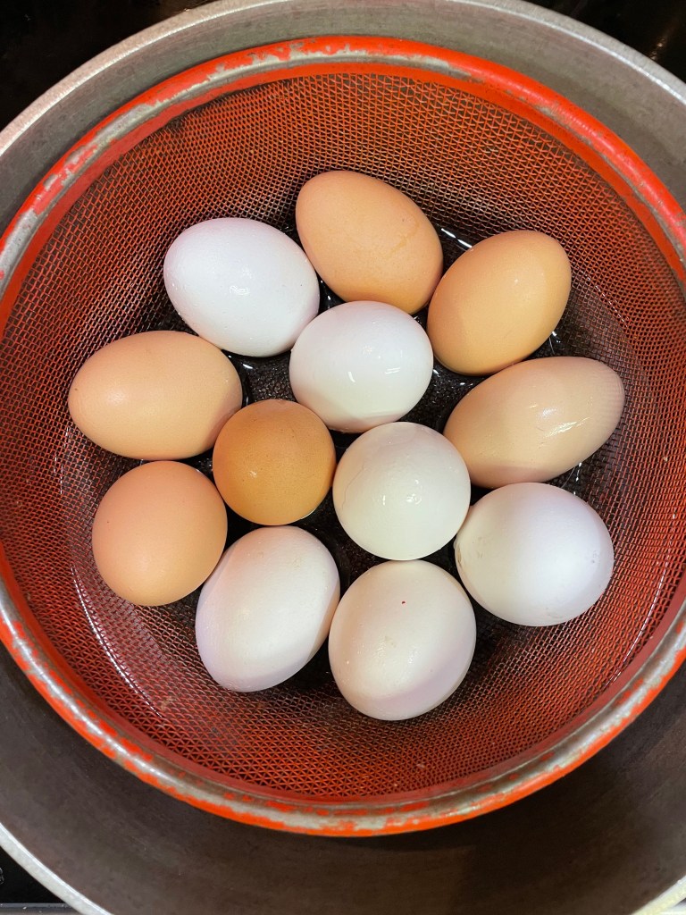 It has been nice to have our layers pick up their laying a bit with warmer temps. We are able to have boiled/deviled eggs much more frequently, not to mention plenty to bake with and eat for breakfasts. This is how I ‘boil’ fresh eggs!
