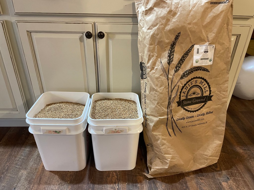 As I continue to bake exclusively with freshly milled grains, it was time for another batch of wheat berries. (Please refer to this article for more bread making encouragement)! The store where I usually purchase our wheat had changed their suppliers. This company is actually considered local to us! On top of that, it was organic. Wow- this can be hard to find in our area. So, this time, I bought hard red wheat berries. These two buckets have snap on lids to keep things fresh and safe from critters. The photo shows 50 pounds. Begin where you are!