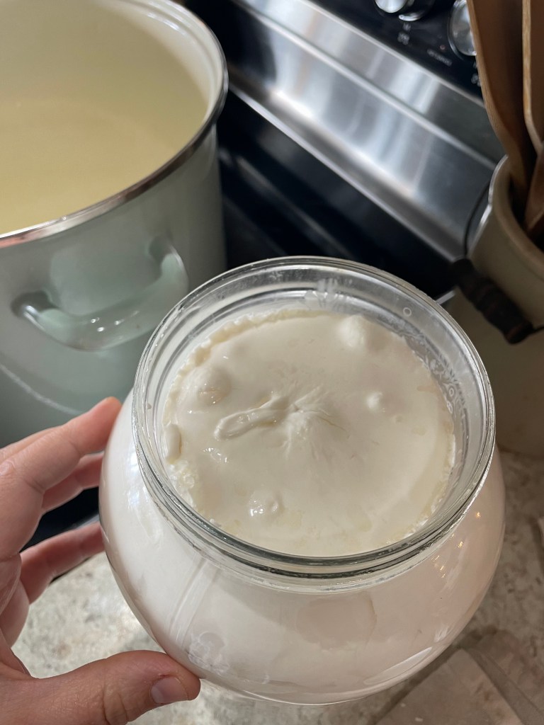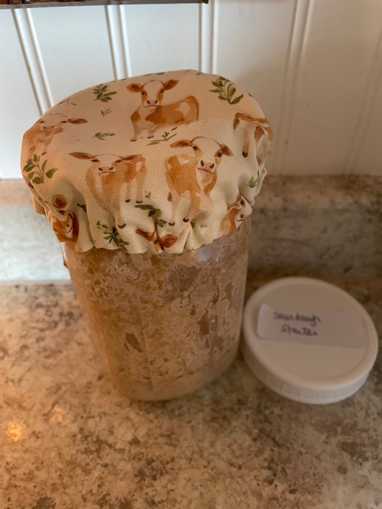 My dearest friend gifted me two of these adorable cloth jar covers and this sweet cow needed to cover my sourdough starter. After a few days of her wishing me a good morning, the cow told me her name was Gladys. What a sweet addition to my morning and evening routine.